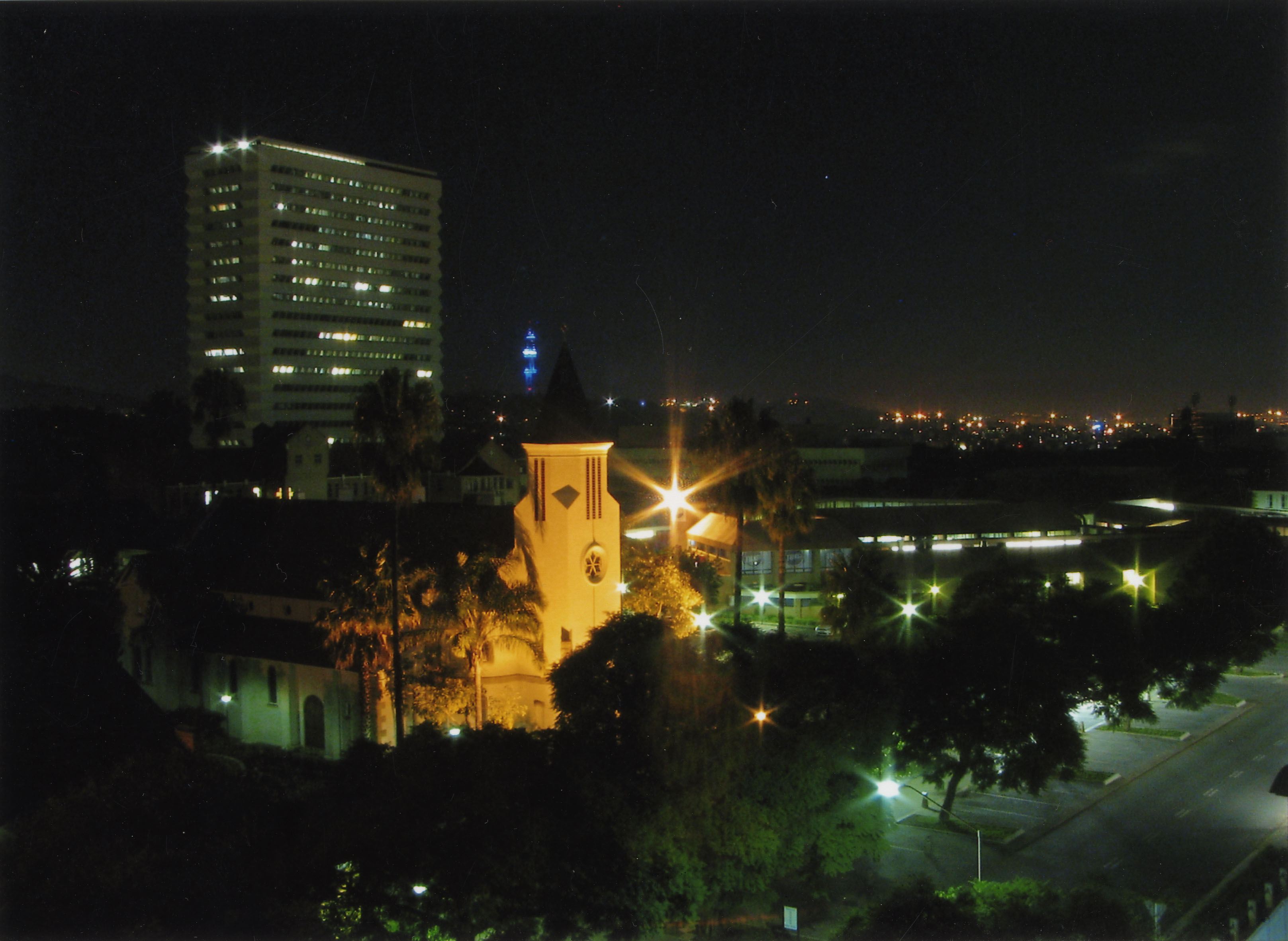 Top view of the Chapel Building at night, Hatfield Campus, University of Pretoria.