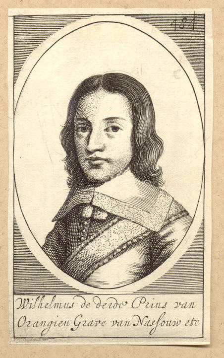 Copper engraving, oval portrait of Willem III as a boy. Numbered 484 in top corner.