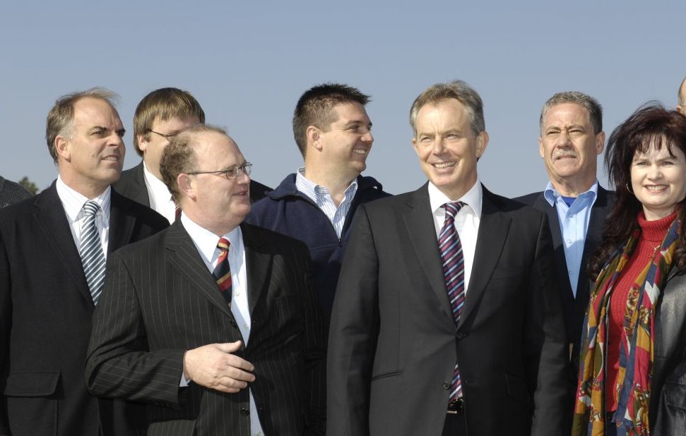 Photograph taken during the visit of Prime Minister Tony Blair to the Department of Plant Production and Soil Science, University of Pretoria. From left to right: Prof Johann Kirsten, Prof Anton Stroh, Prof Calie Pistorius (Rector and Vice Chancellor, UP), Mr Wayne Truter, Prime Minister Blair, Prof Charlie Reinhardt and Prof Elsa du Toit.