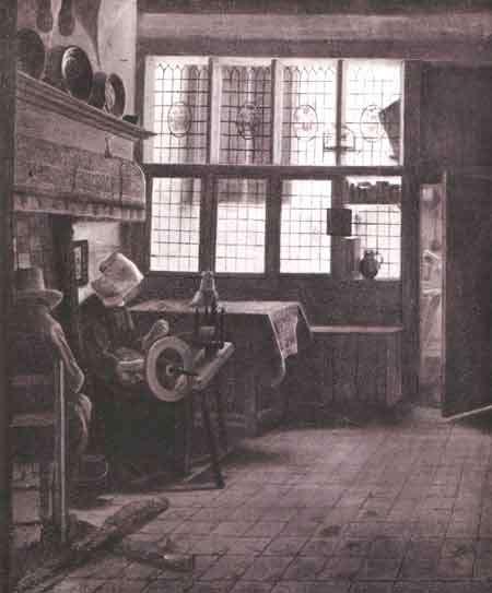 Painting, Pearse, G.E., 17th Century, Seventeenth century, Spinning wheel, Dutch interior, Pearse, Geoffrey Eastcott, 1885-1968, Boursse, Esaias, 1631-1672