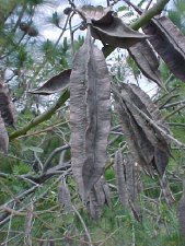 BOTANICAL DESCRIPTION: General: A deciduous shrub or small tree. Leaves: Drooping, compound dark green leaves. Flowers: Red or orange pea-like flowers in dense sprays. Spring - early summer. Fruit: The seeds are carried in a characteristic long four-winged pod with a sharply pointed tip.
