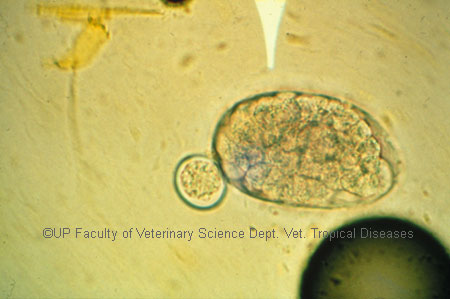 The worm egg measures about 80-85 by 40-45 in size so that one can obtain an idea of the relative sizes of the two for diagnostic purposes. The preparation is made by the flotation technique of sheep faeces.
