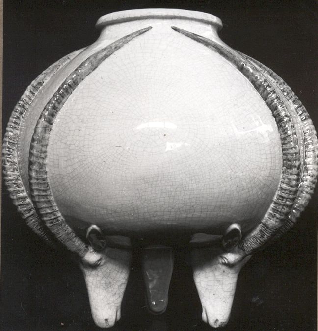 This Sable Head Vase, in cream ceramic crackleware is identical to Eloff’s bronze version in front of the Union buildings. He created several ceramic versions of the antelope themed vase which he produced for family and friends.