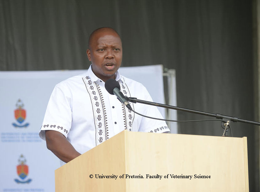 Photo of Dr Alfred Kgasi, President of the South African Veterinary Council, delivering his speech at the Faculty of Veterinary Science Centenary celebration event on February 07, 2020